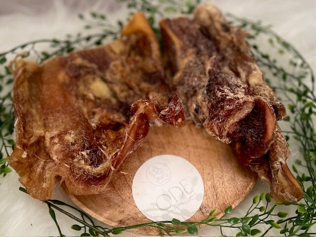Deze runderkopplaten zijn een stevige kauwsnack maar zeker heel smakelijk. Omdat dit een harde snack is, is deze minder geschikt voor pups of senioren.