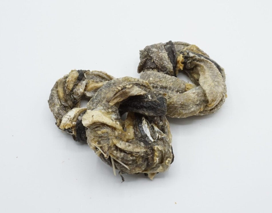 Heerlijke kabeljauw huid gedraaid in mooie ringen. 100% natuurlijk gedroogd en uiteraard zonder toevoegingen.