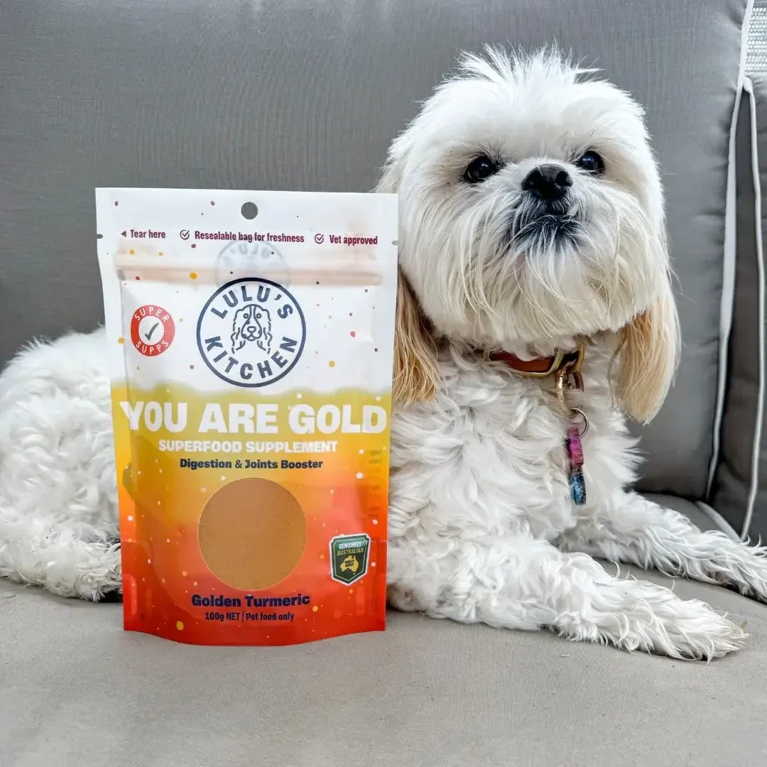 You Are Gold is een kurkuma-supplement voor gewrichten en spijsvertering voor honden.
